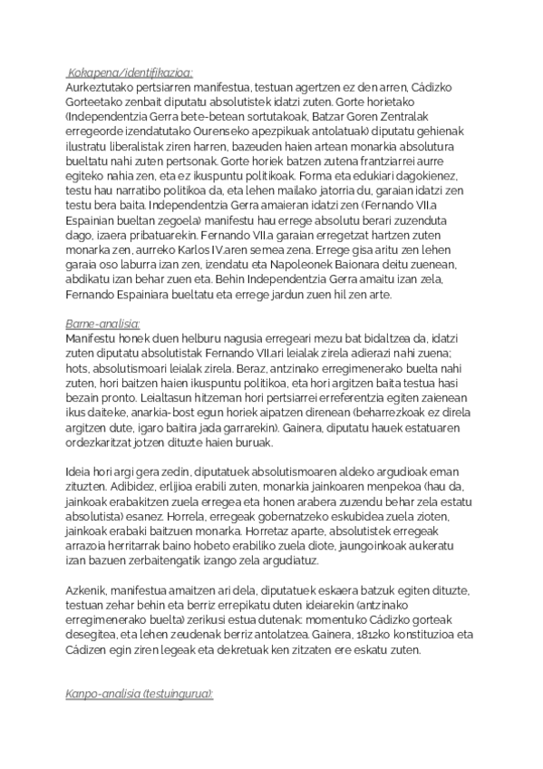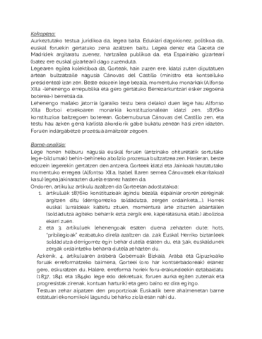 comentario de 1876ko konstituzioa en euskera para sacar un 10. Por favorrrr