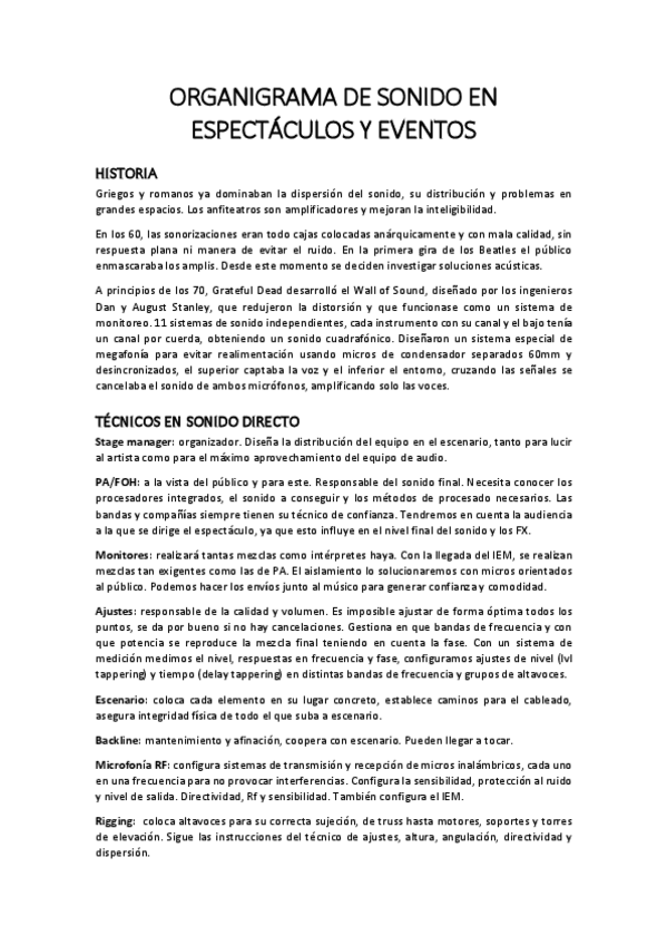 Control de sonido en directo - Teoría