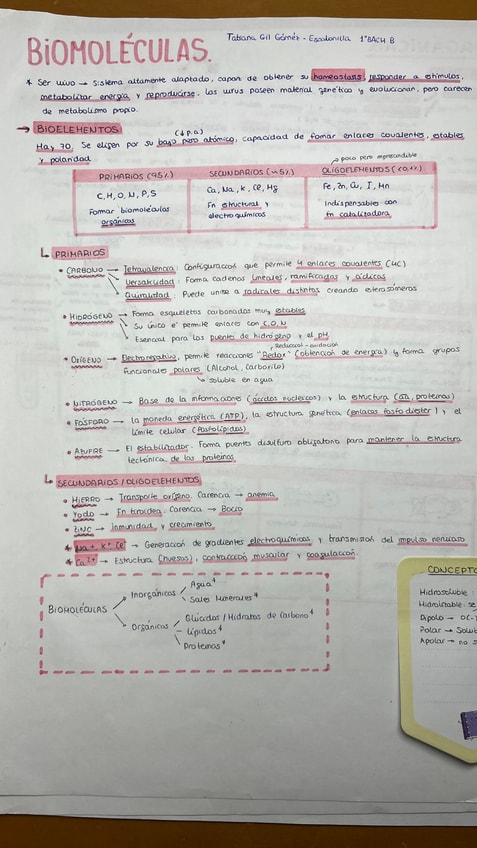 He publicado nuevos apuntes de 1º Biología, Geología y Ciencias Ambientales: BIOMOLECULAS ORGÁNICAS E INORGANICAS RESUMEN