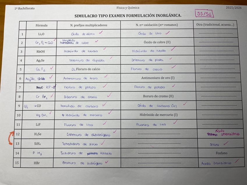 EXÁMENES Y REPASO FORMULACIÓN INORGANICA FÁCIL