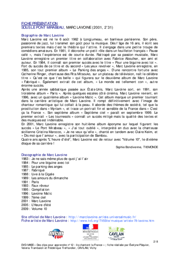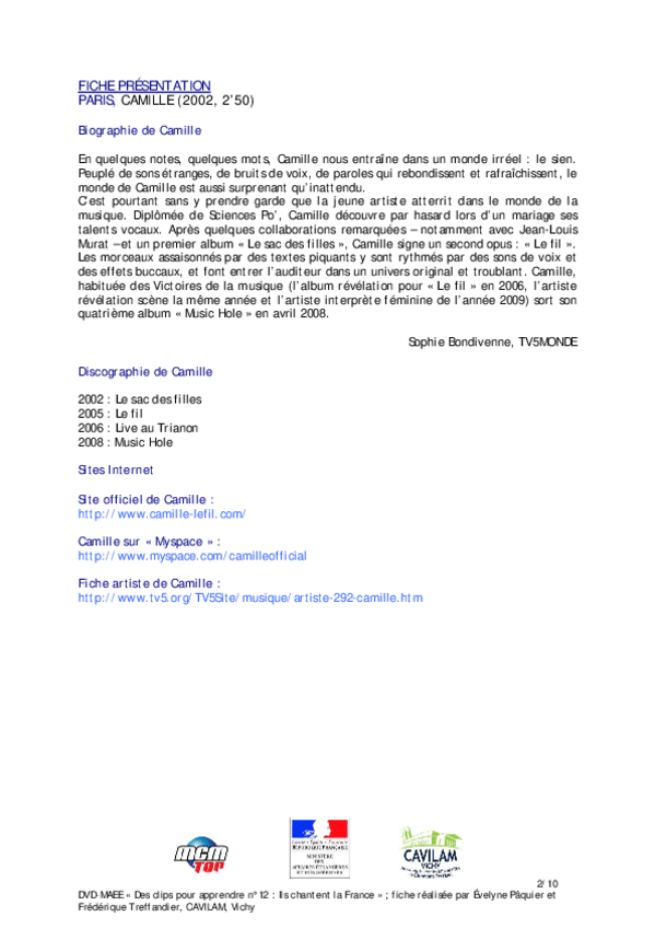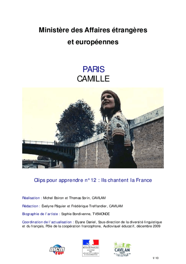 He publicado nuevos apuntes de 1º Lengua Extranjera: Chanson-A2-Camille-Paris.pdf