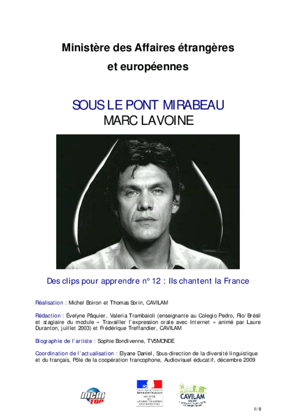 He publicado nuevos apuntes de 1º Lengua Extranjera: Chanson-B1-Marc-Lavoine-Sous-le-pont-mirabeau.pdf