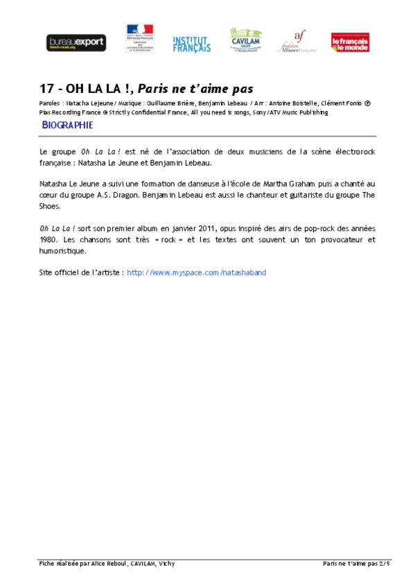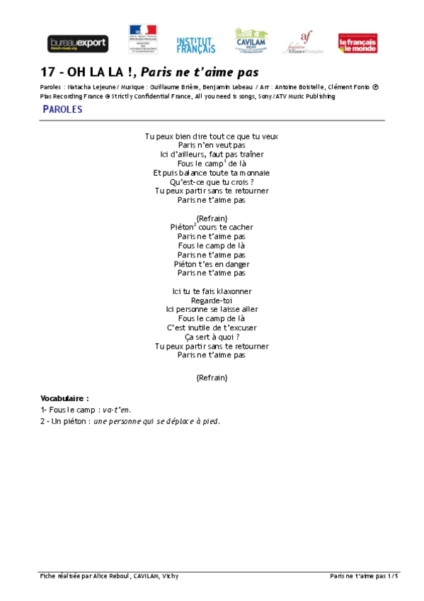 He publicado nuevos apuntes de 1º Lengua Extranjera: Chanson-B1-Oh-la-la-Paris-ne-taime-pas.pdf
