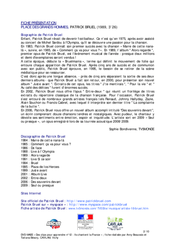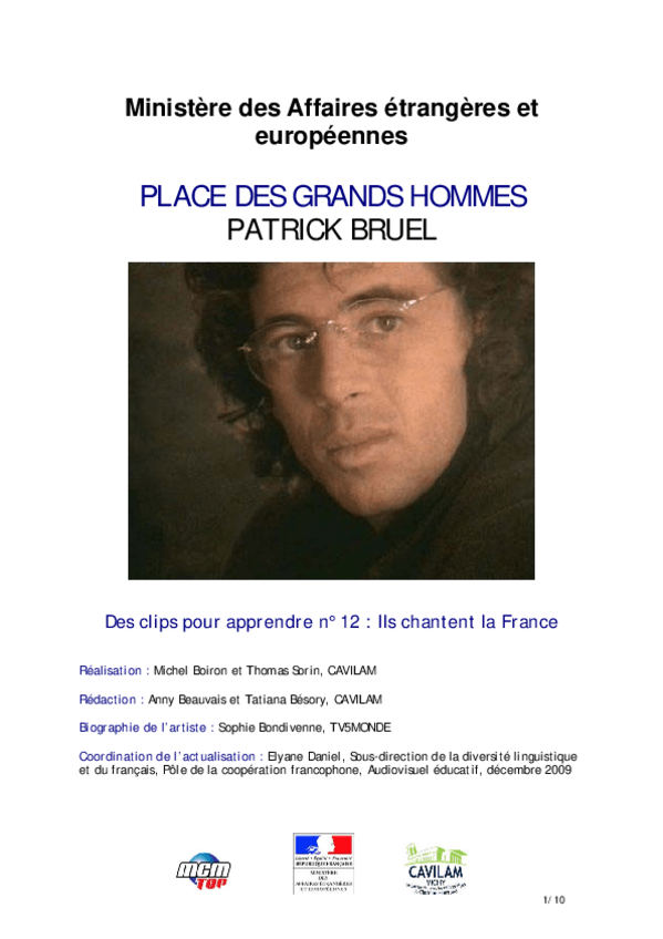 He publicado nuevos apuntes de 1º Lengua Extranjera: Chanson-B1-Patrick-Bruel-Place-des-grands-hommes.pdf