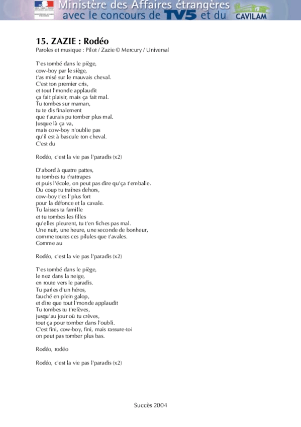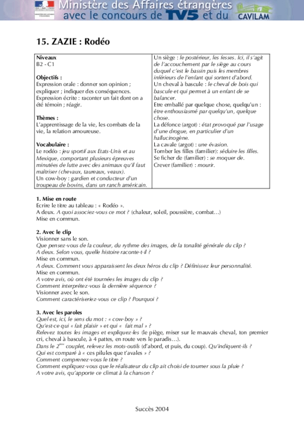 He publicado nuevos apuntes de 1º Lengua Extranjera: Chanson-B2-Zazie-Rodeo.pdf