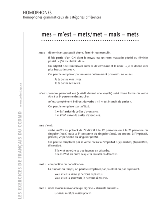 He publicado nuevos apuntes de 1º Lengua Extranjera: Homophone-mes-mest-mets--met-mais-mets.pdf