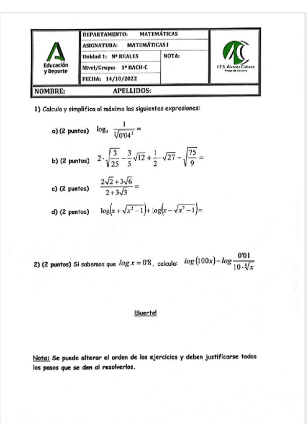 He publicado nuevos examenes de 1º Matemáticas I: Examen-Matematicas-1-Trimestre-Subir-Nota.pdf