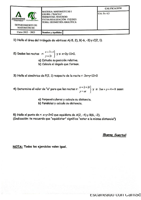 He publicado nuevos examenes de 1º Matemáticas I: EXAMEN-GEOMETRIA-ANALITICA-RESUELTO.pdf