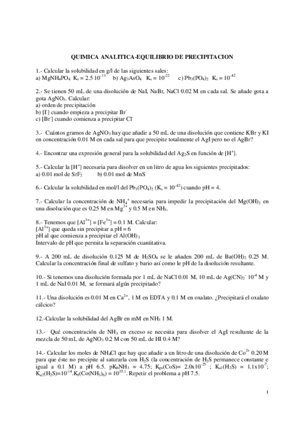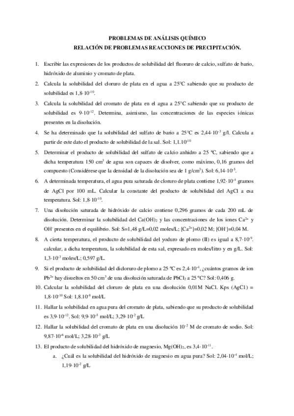 He publicado nuevos ejercicios de Análisis químicos: Equilibrio de precipitación