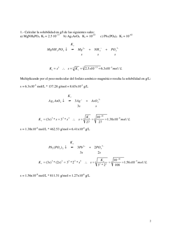 He publicado nuevos ejercicios de Análisis químicos: Equilibrio de precipitación