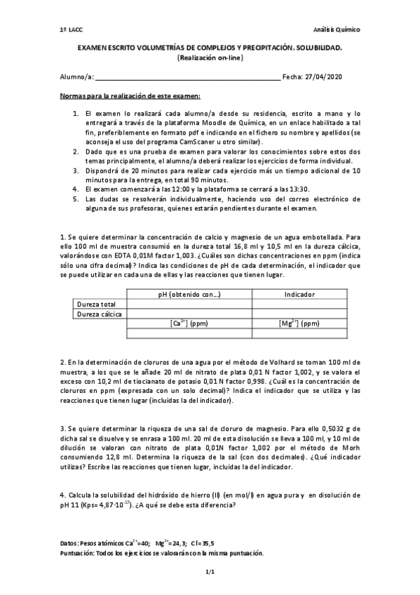 He publicado nuevos examenes de Análisis químicos: Examen