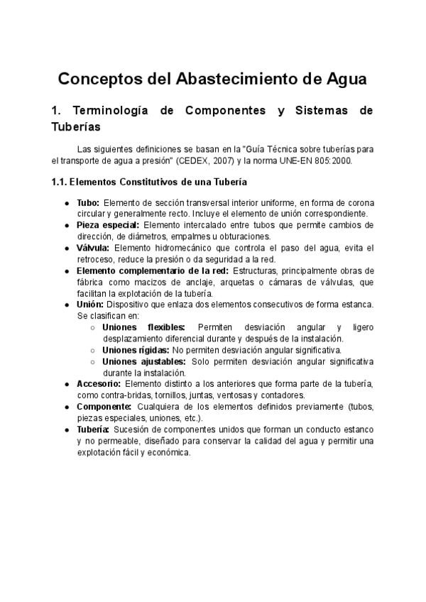 Resumen de cada uno de los temas de teoría de la asignatura de Abastecimiento de Aguas