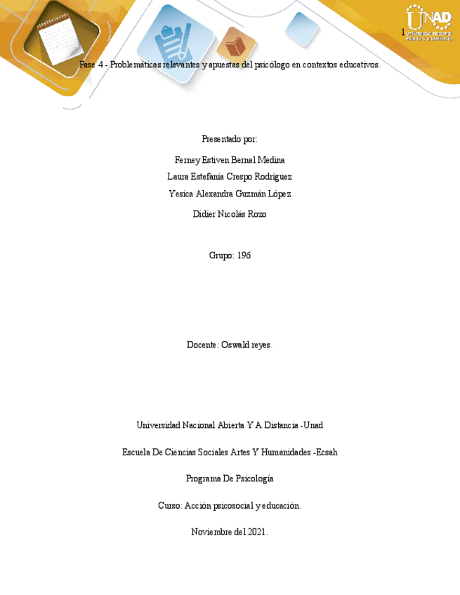 He publicado nuevos trabajos de 7º Acción Psicosocial en Psicología Educativa: Fase-4.-grupo-196.-colaborativo1-Accion-psicosocial-y-Educacion.pdf