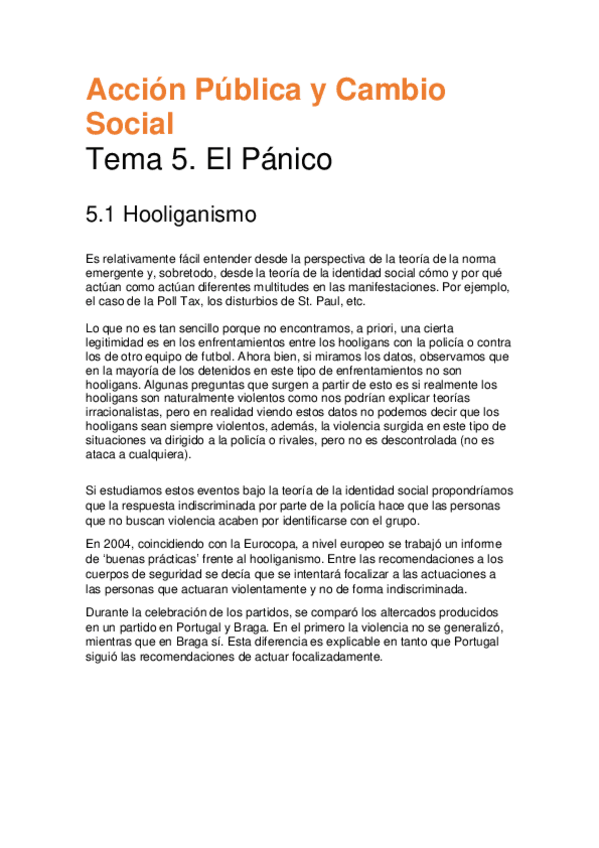 He publicado nuevos apuntes de 4º Acción Pública y Cambio Social: Tema 5. Hooliganismo y Pánico.pdf