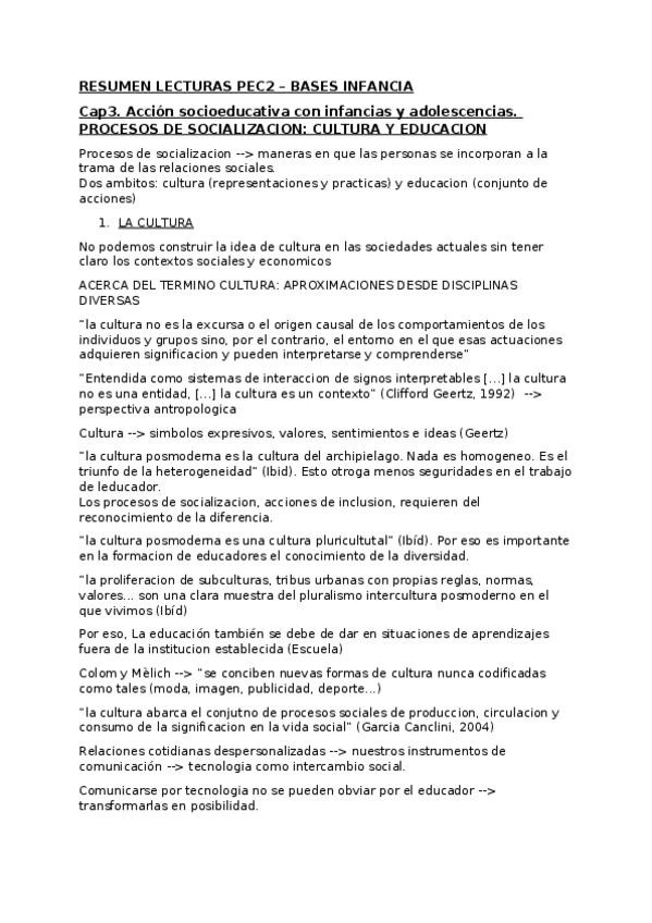 He publicado nuevos apuntes de 1º Acción Socioeducativa con Infancia (Antes Bases para la Acción Socioeducativa en Infancia en Riesgo Social): Resumen-lecturas-PEC2.docx