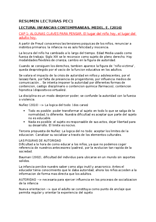 He publicado nuevos apuntes de 1º Acción Socioeducativa con Infancia (Antes Bases para la Acción Socioeducativa en Infancia en Riesgo Social): Resumen-lecturas-PEC2.docx