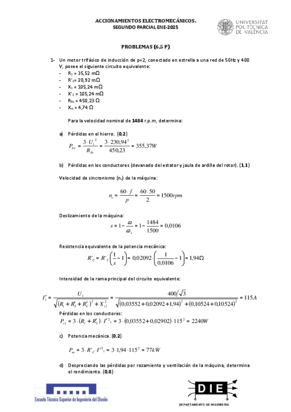 He publicado nuevos examenes de 4º Accionamientos Electromecánicos: Parcial12425Resuelto.pdf