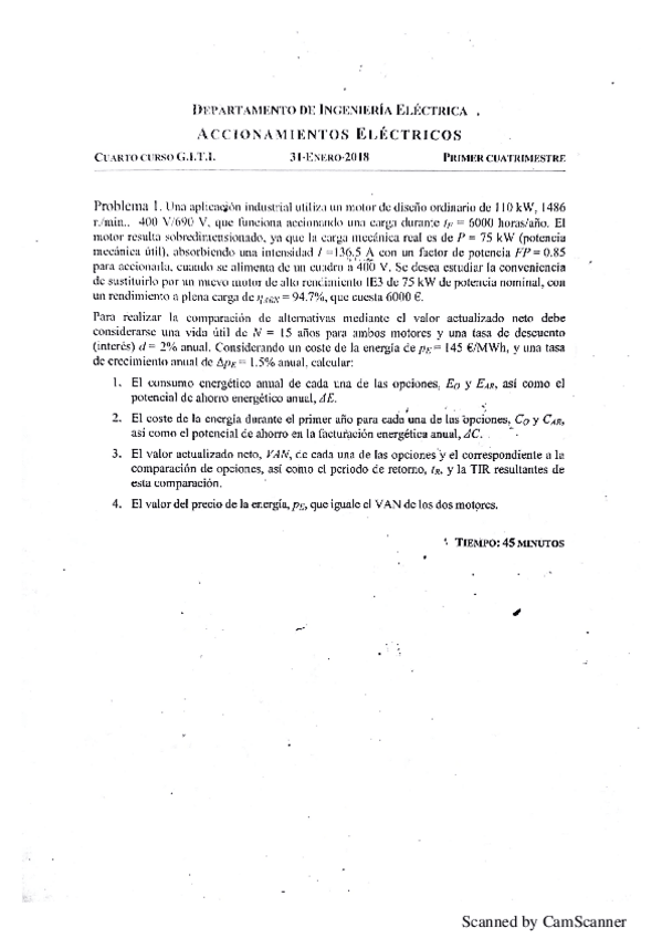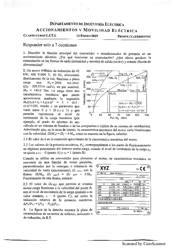 He publicado nuevos examenes de 4º Accionamientos y Movilidad Eléctrica (El): Examen Accionamientos eléctricos Ene 2018.pdf