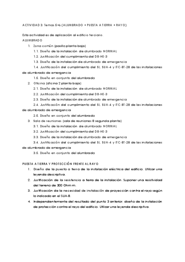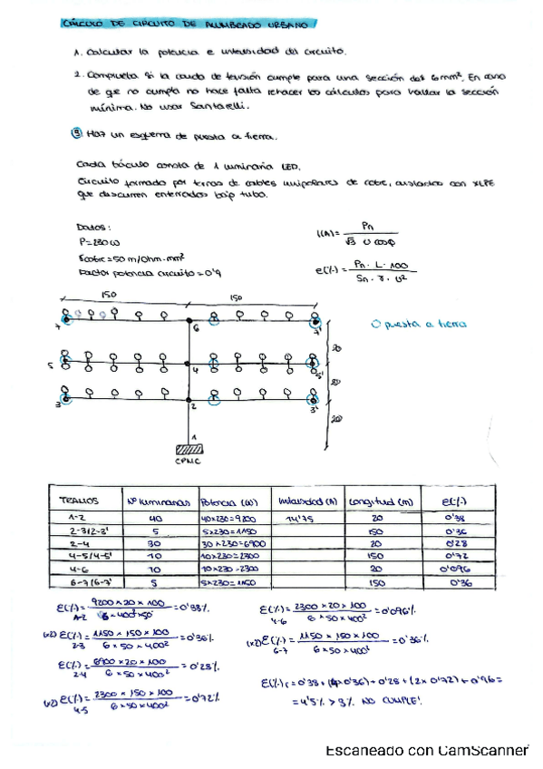Corrección de alumbrado que estaba subido a wuolah por partes. Aquí está junto al enunciado, corregido y con "extra" (puesta a tierra)