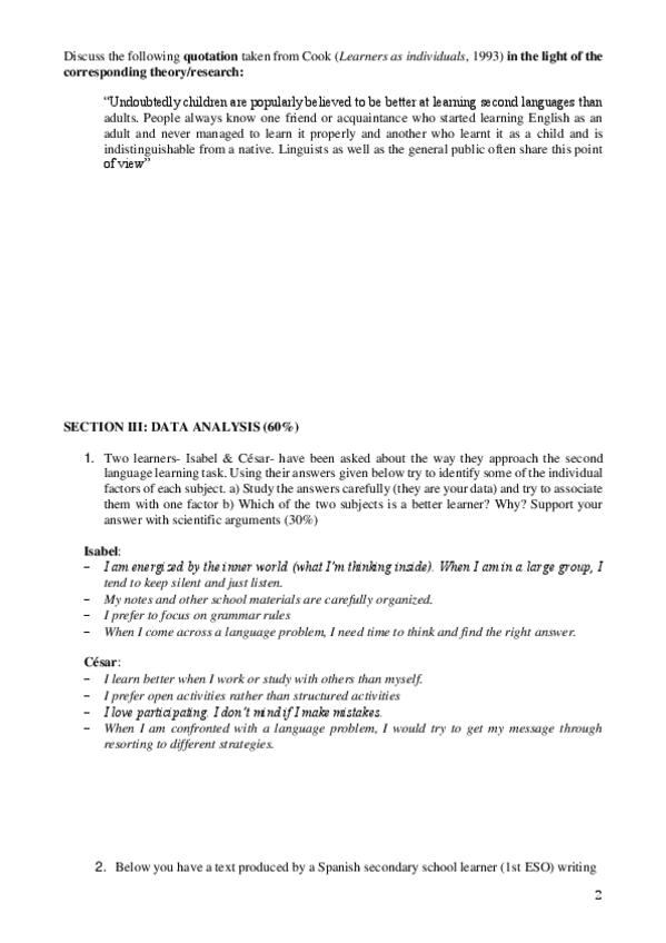 He publicado nuevos apuntes de 4º Acquisition of English as a Foreign Language: Example-exam-1.pdf