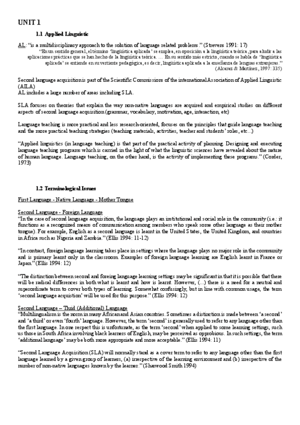 He publicado nuevos apuntes de 4º Acquisition of English as a Foreign Language: Unit-2.pdf