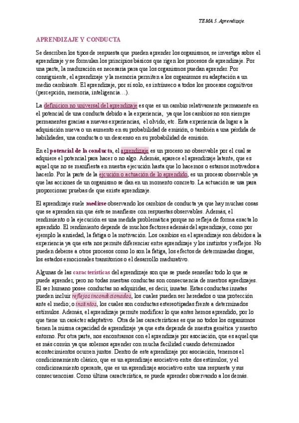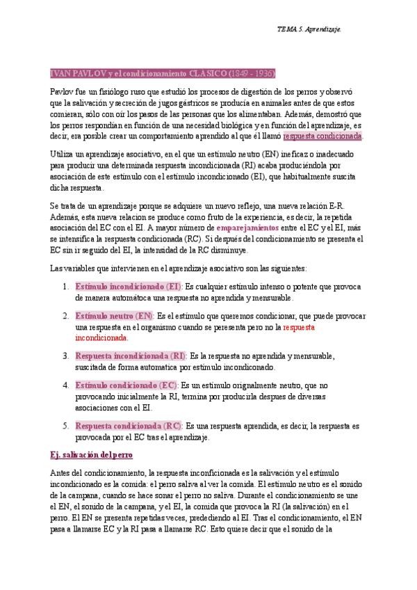 Es el tema 5, sobre aprendizaje (Condicionamientos Clásico y Operante). Apuntes redactados del PowerPoint de la profesora.