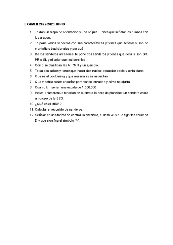 He publicado nuevos examenes de 3º Actividades Físicas Recreativas en el Medio Natural: Examen-Naturaleza-2022-23.pdf