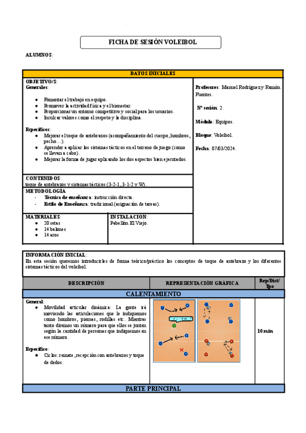 Diseño de sesión de voleibol
