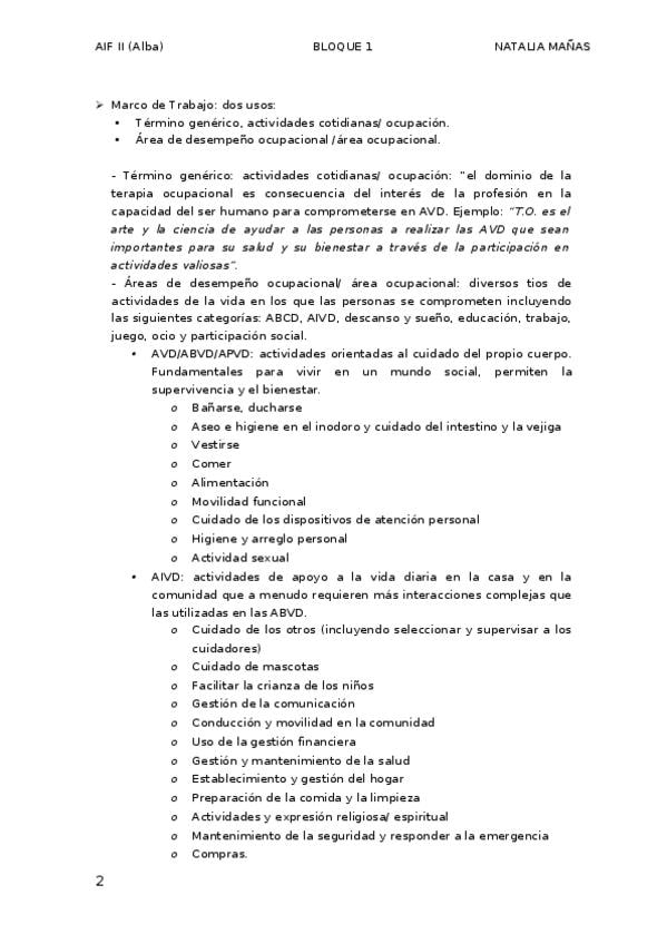 He publicado nuevos apuntes de 2º Actividades para la independencia funcional II. Desempeño ocupacional en la vida diaria: AIF II (Teoría, Practicas y Seminarios) (1 Parcial)