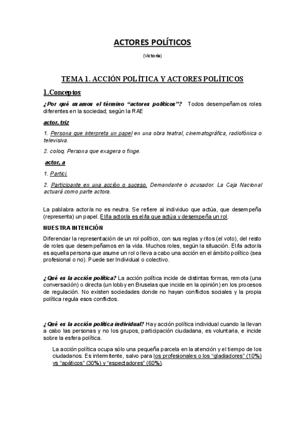 Apuntes Actores Políticos 1º