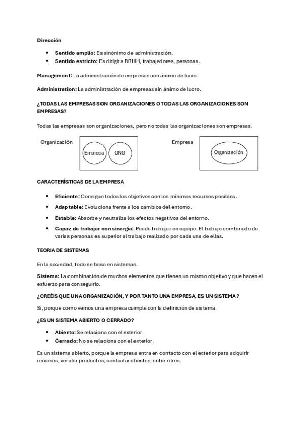 Apuntes de Tema 1: La administración de la empresa - Administración de la Empresa (2º cuatrimestre, 1º de ADE)