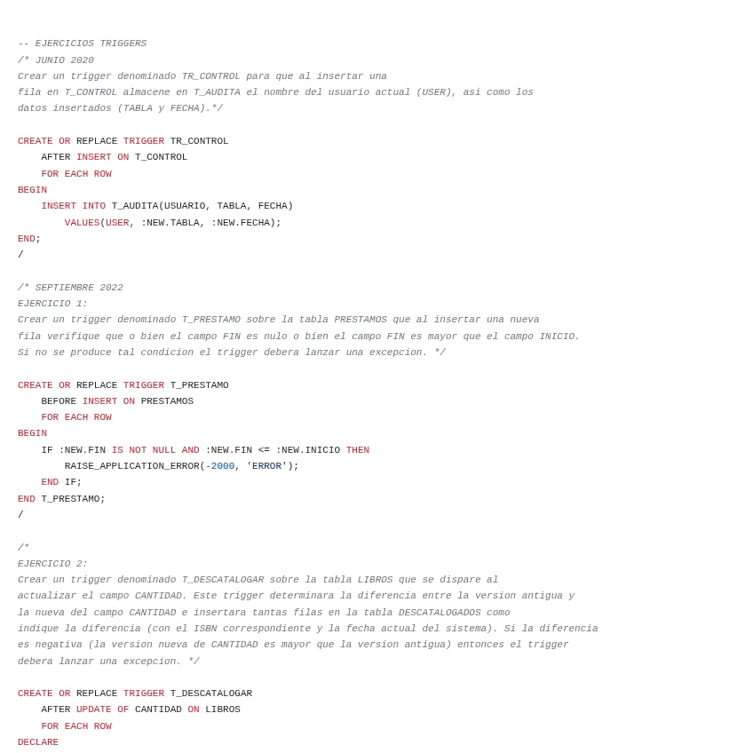 EJERCICIOS TRIGGERS