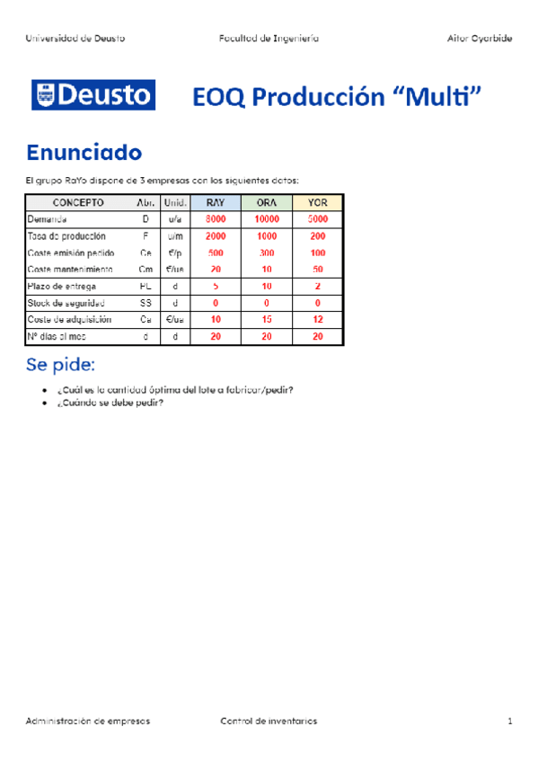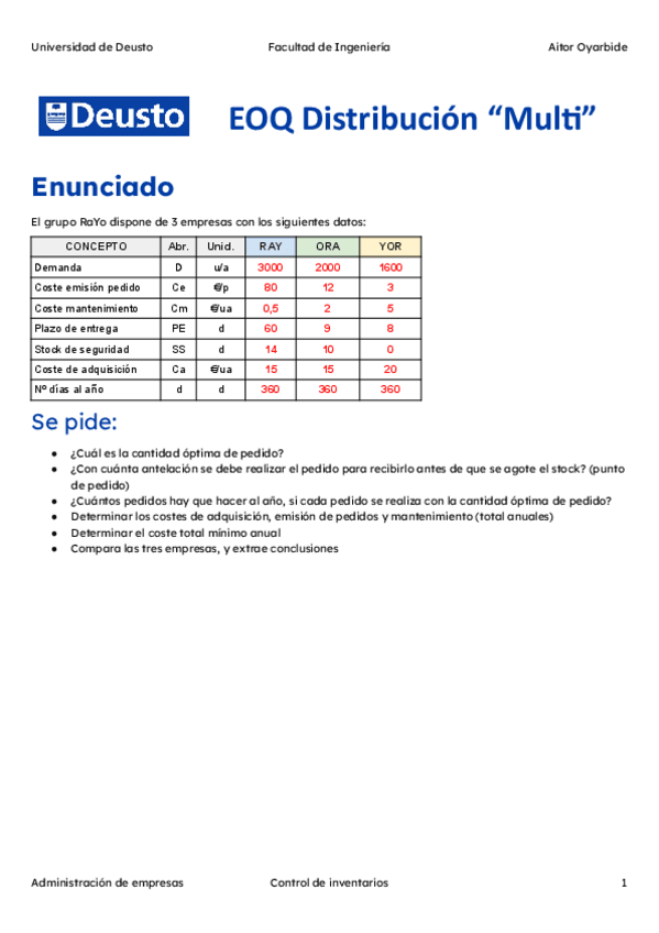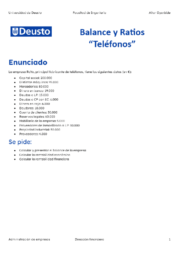 He publicado nuevos ejercicios de 1º Administración de Empresas: Ejercicios
