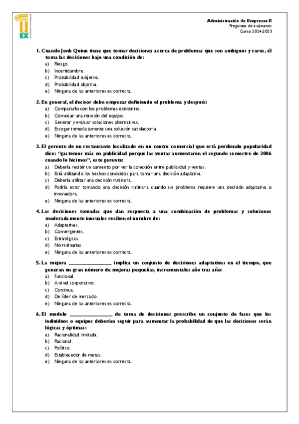 He publicado nuevos examenes de 2º ADMINISTRACIÓN DE LA EMPRESA II: Examen final ade 2 24-25