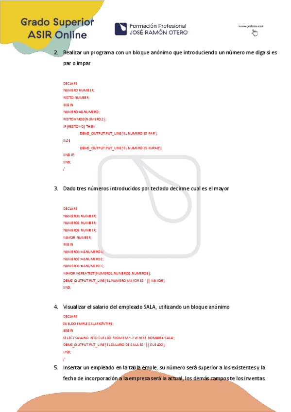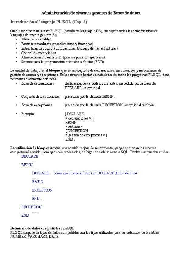 He publicado nuevos apuntes de Administración de sistemas gestores de bases de datos: EjerciciosPL-SQL.pdf