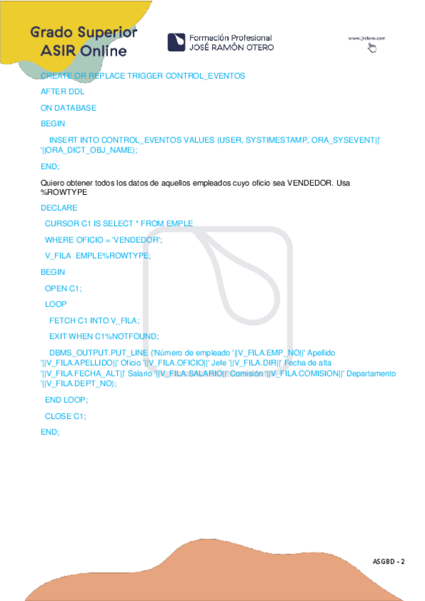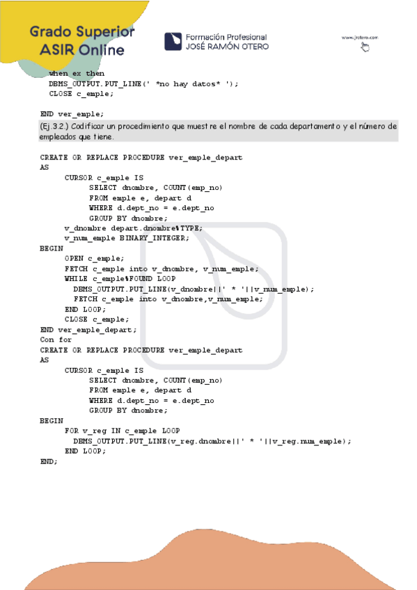 He publicado nuevos apuntes de Administración de sistemas gestores de bases de datos: EjerciciosPL-SQL-Cursores.pdf