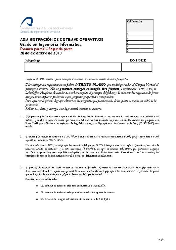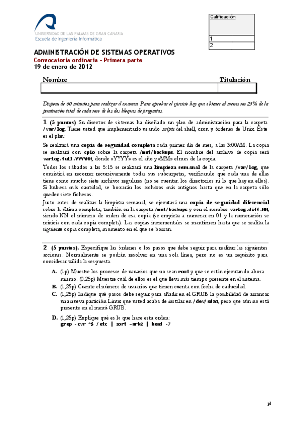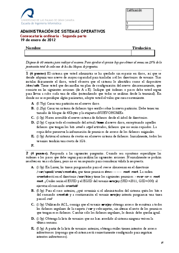 He publicado nuevos examenes de 3º Administración de Sistemas Operativos: ExamenPrimerParcialASOGrupo2.pdf