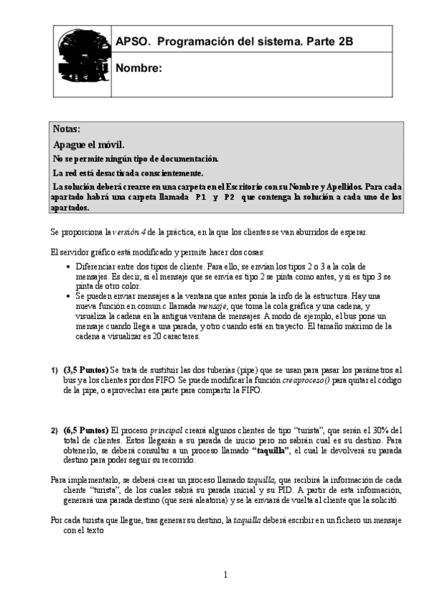 He publicado nuevos examenes de 2º Administración y Programación de Sistemas Operativos: EnunciadoBUS.pdf