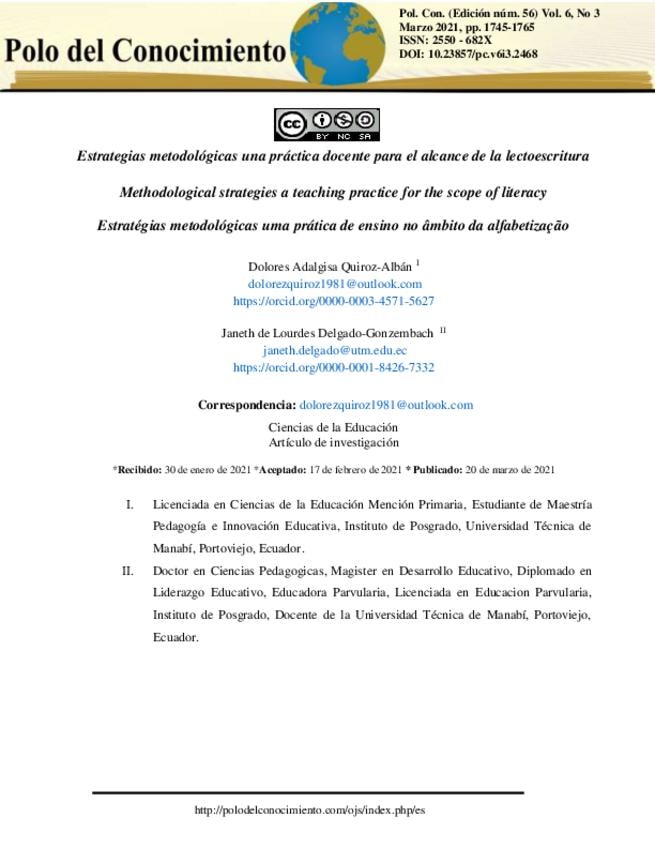 Estrategias metodológicas una práctica docente para el alcance de la lectoescritura