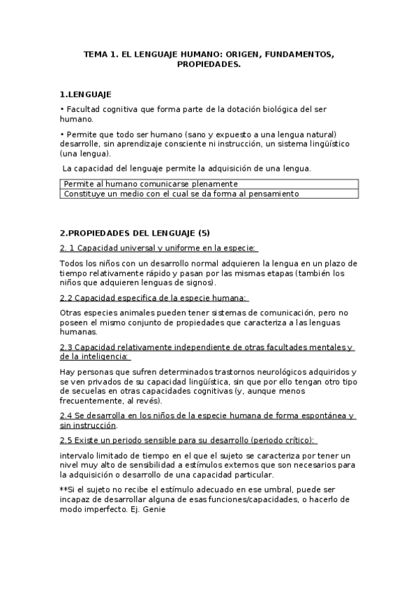 TEMA 1. EL LENGUAJE HUMANO: ORIGEN Y FUNDAMENTOS