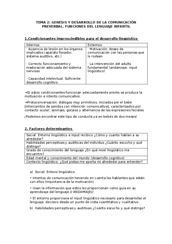 TEMA 2. GÉNESIS Y DESARROLLO DE LA COMUNICACIÓN PREVERBAL. FUNCIONES DEL LENGUAJE INFANTIL.