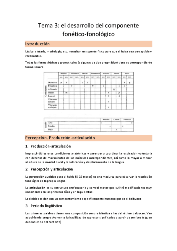 TEMA 3. EL DESARROLLO DEL COMPONENTE FONÉTICO-FONOLÓGICO