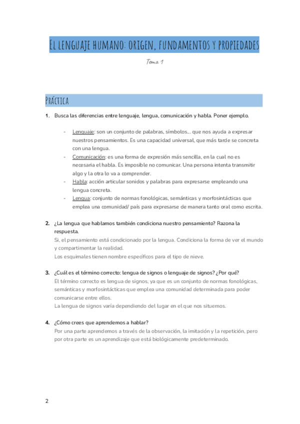 TEMA 1. EL LENGUAJE HUMANO: ORIGEN Y FUNDAMENTOS