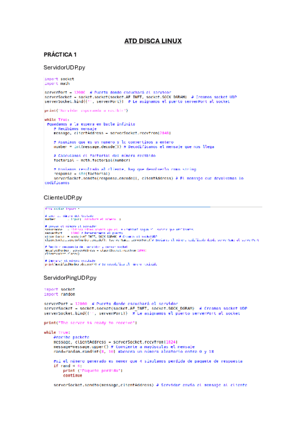 Apuntes Tema 1,2 y 3 ATD resumido, conceptos clave y desarrollo del codigo para el servidor/cliente TCP/UDP