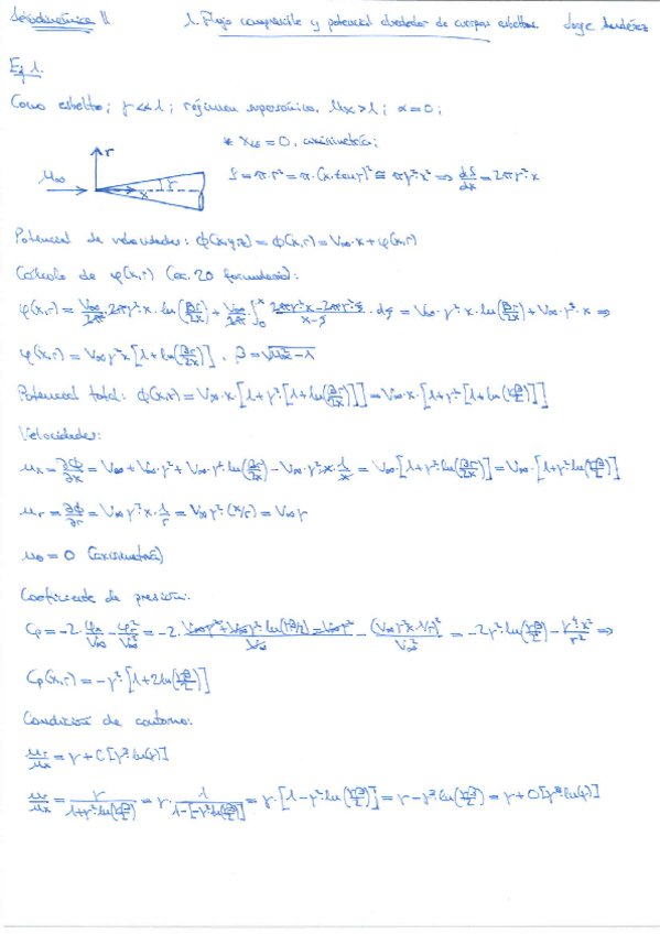 He publicado nuevos ejercicios de 4º Aerodinámica II: 1. Flujo compresible y potencial alrededor de cuerpos esbeltos.pdf