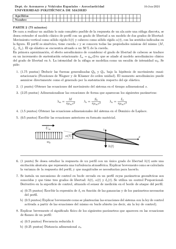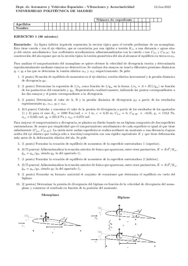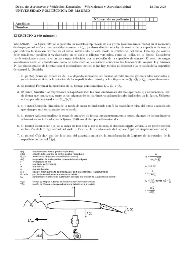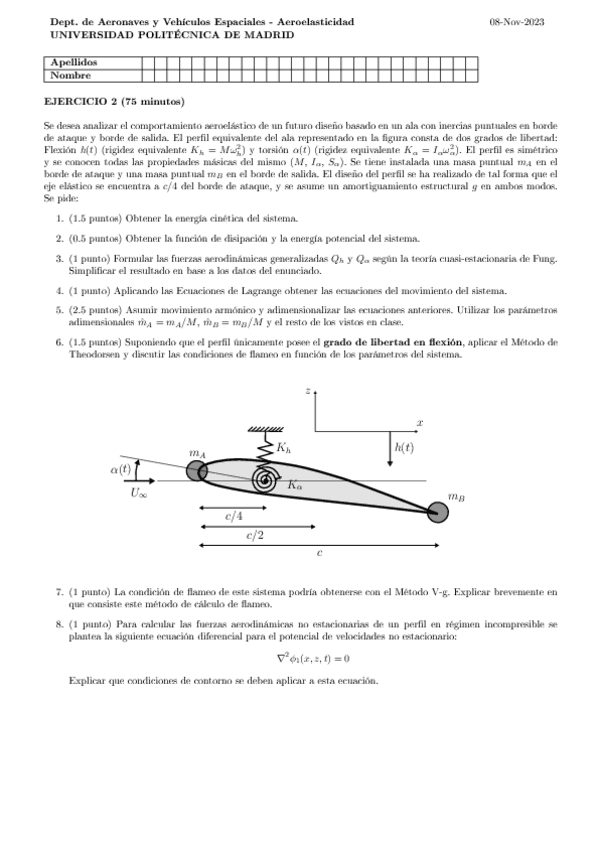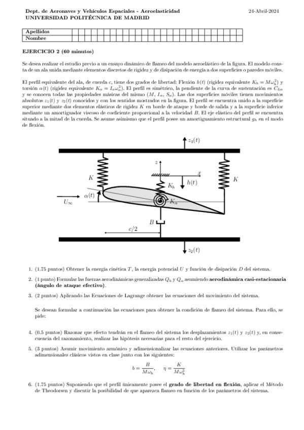 EXAMENES AEROELASTICIDAD con SOLUCION 2018-2025