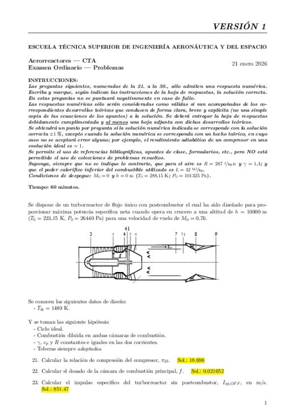 He publicado nuevos examenes de 3º Aerorreactores: Problema + Teoría Ordinario 25/26 CTA