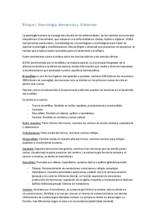 Este documento es un temario detallado de Afecciones Médico-Quirúrgicas I, centrado principalmente en la neurología y la traumatología. El contenido abarca desde la fisiopatología de demencias como el Alzheimer y la demencia vascular , hasta el estudio de
