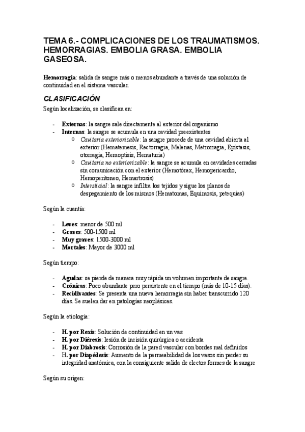 TEMA 6 - COMPLICACIONES DE LOS TRAUMATISMOS. HEMORRAGIAS. EMBOLIA GRASA. EMBOLIA GASEOSA.pdf