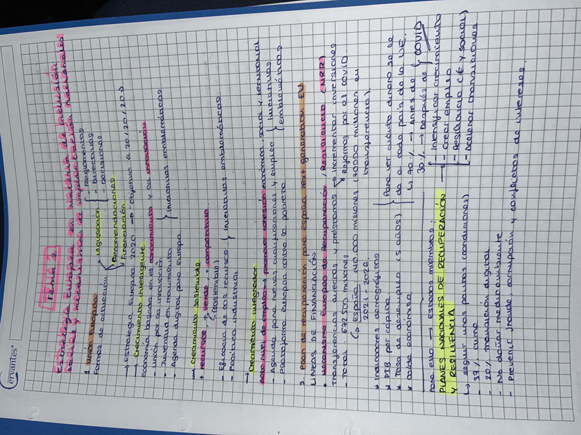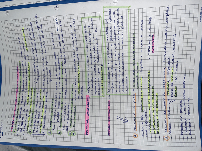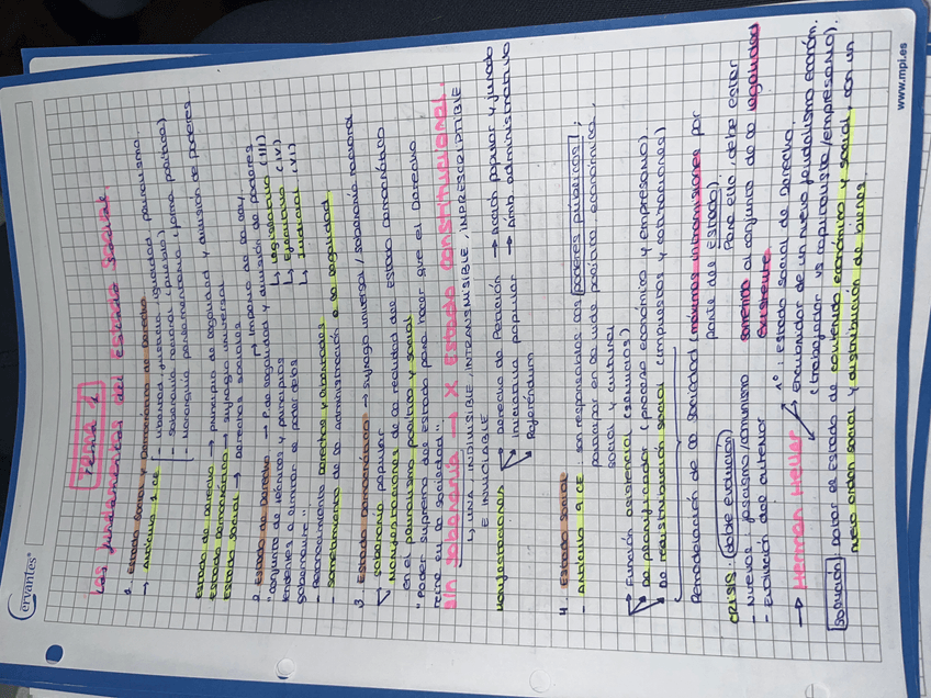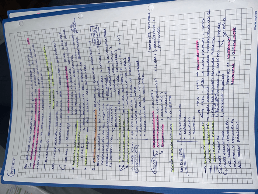 Apuntes hechos a mano con los puntos y aspectos importantes de todos los temas